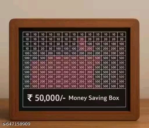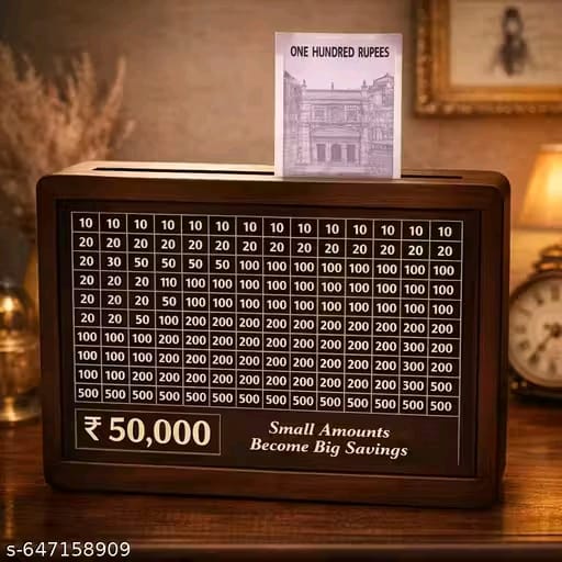 “Save Smart, Dream Big!” Wooden money saving box designed with a ₹50,000 savings goal. Made from durable wood with a premium carved design, this piggy bank is perfect for kids and adults to build a strong saving habit. Ideal for coins and cash storage, it encourages disciplined savings in a fun and engaging way. Compact, stylish, and perfect for gifting, home decor, and personal finance goals.